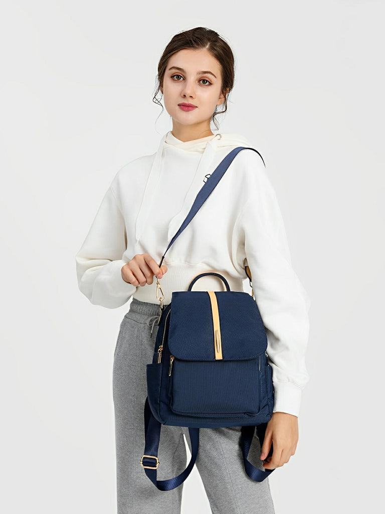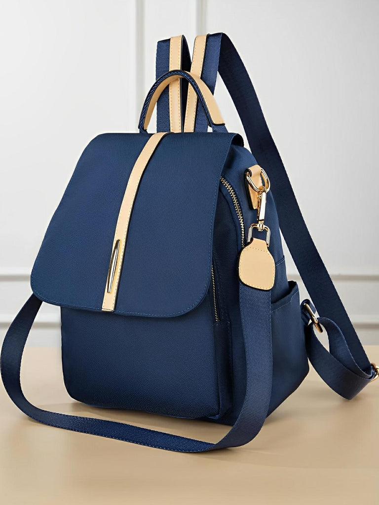 Adoptieren Sie den kompakten Damenrucksack, der für Ihre vollen Tage gedacht ist. Hergestellt aus robustem und wasserdichtem Nylon, begleitet er Sie bei jedem Wetter, ohne Kompromisse beim Stil einzugehen. Mit seinem klaren Design und dem tiefen Blauton passt dieser Rucksack sowohl zu einem Arbeitstag als auch zu einem urbanen Ausflug.