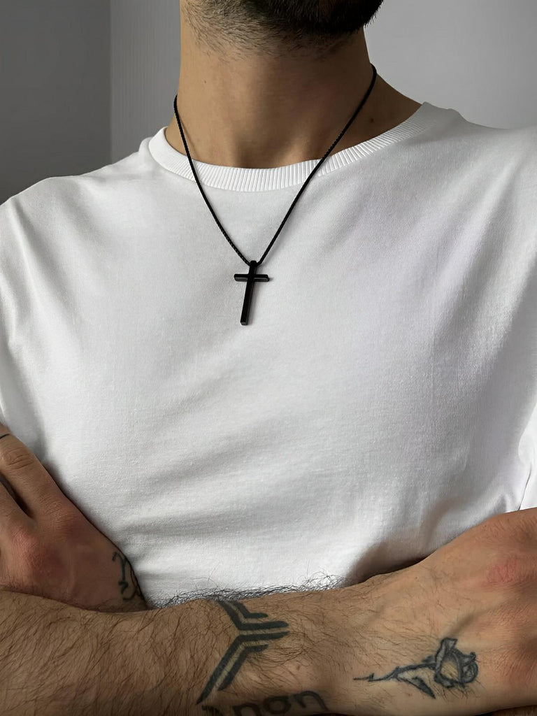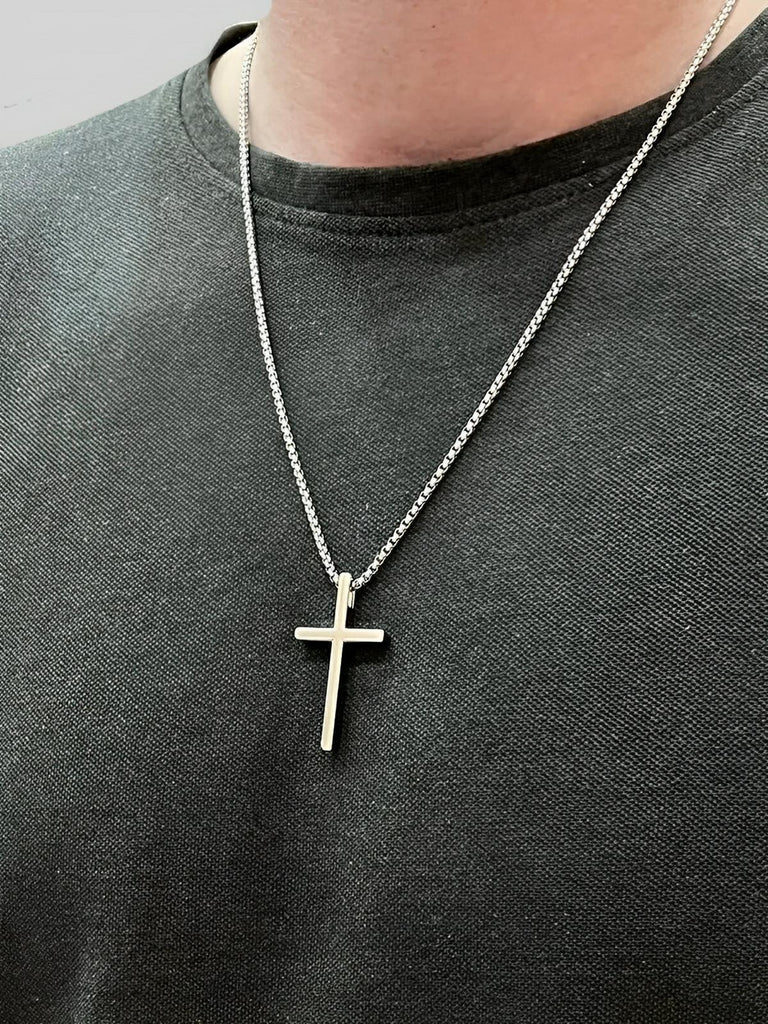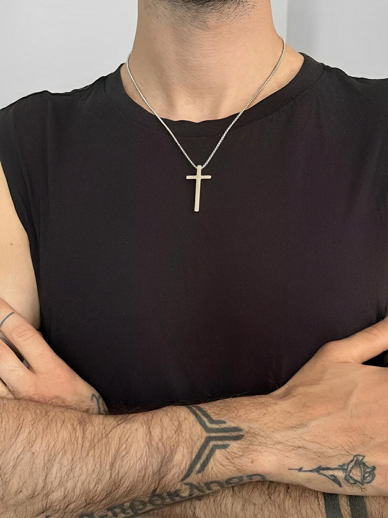 Entdecken Sie diese wunderschöne Kreuzkette für Männer im schlichten und modernen Stil, ideal für diejenigen, die eine Note von eleganter Schlichtheit suchen.