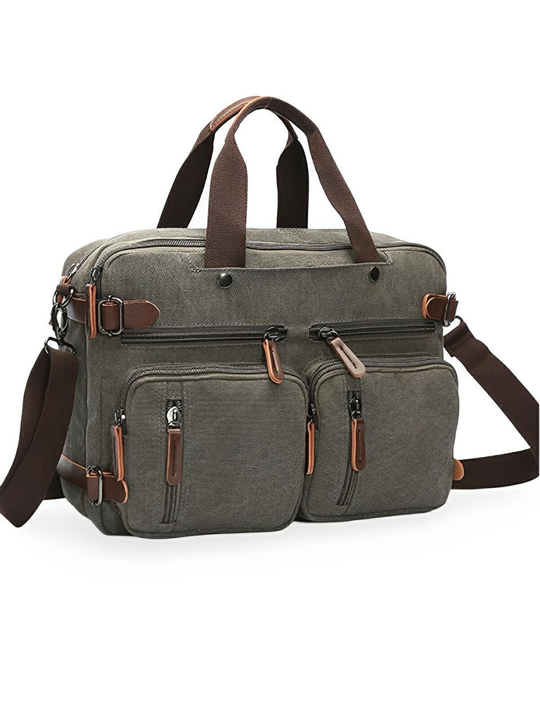 Umhängetasche, die in einen Rucksack umwandelbar ist, Business-Stil aus Canvas, mit mehreren Taschen, Modell Nolan
