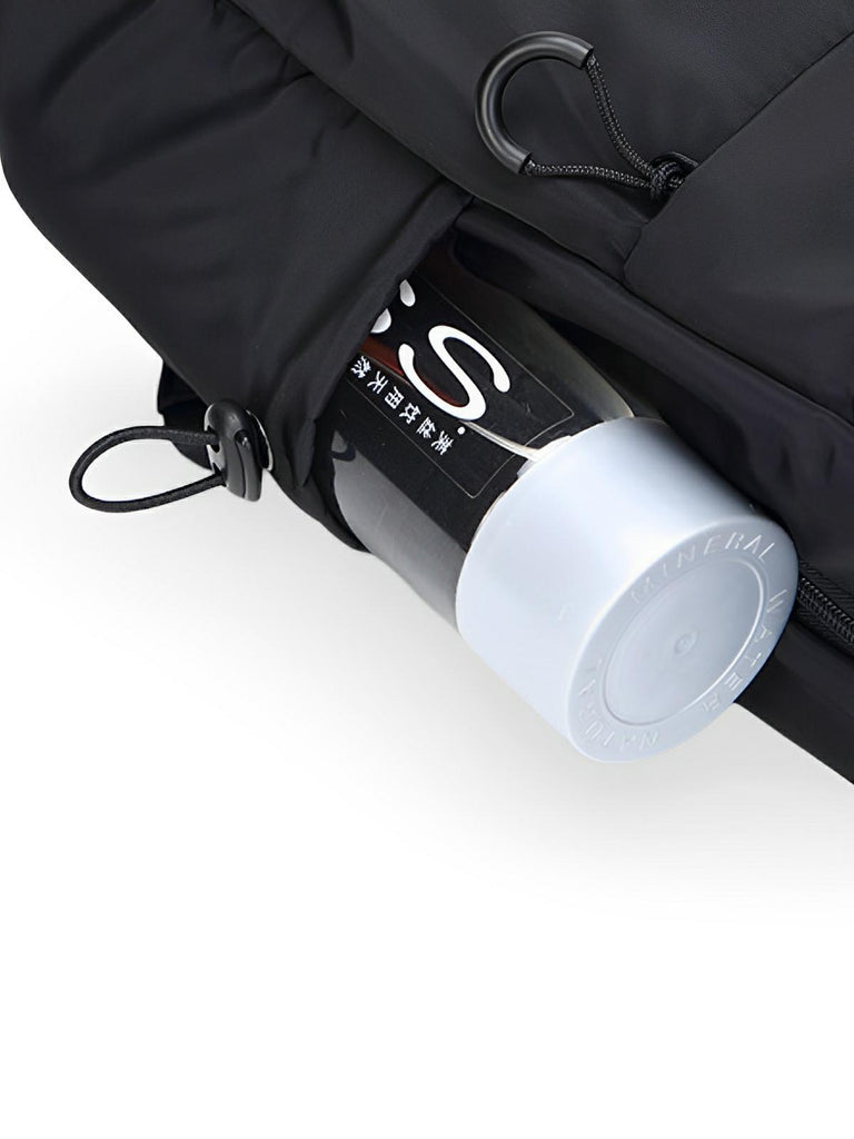 Diese Tasche bietet eine intelligente Organisation mit mehreren Fächern: einem großen Hauptfach, einem vorderen Reißverschlussfach für schnellen Zugriff sowie praktischen seitlichen Fächern, um eine Flasche oder andere wichtige Accessoires zu verstauen.