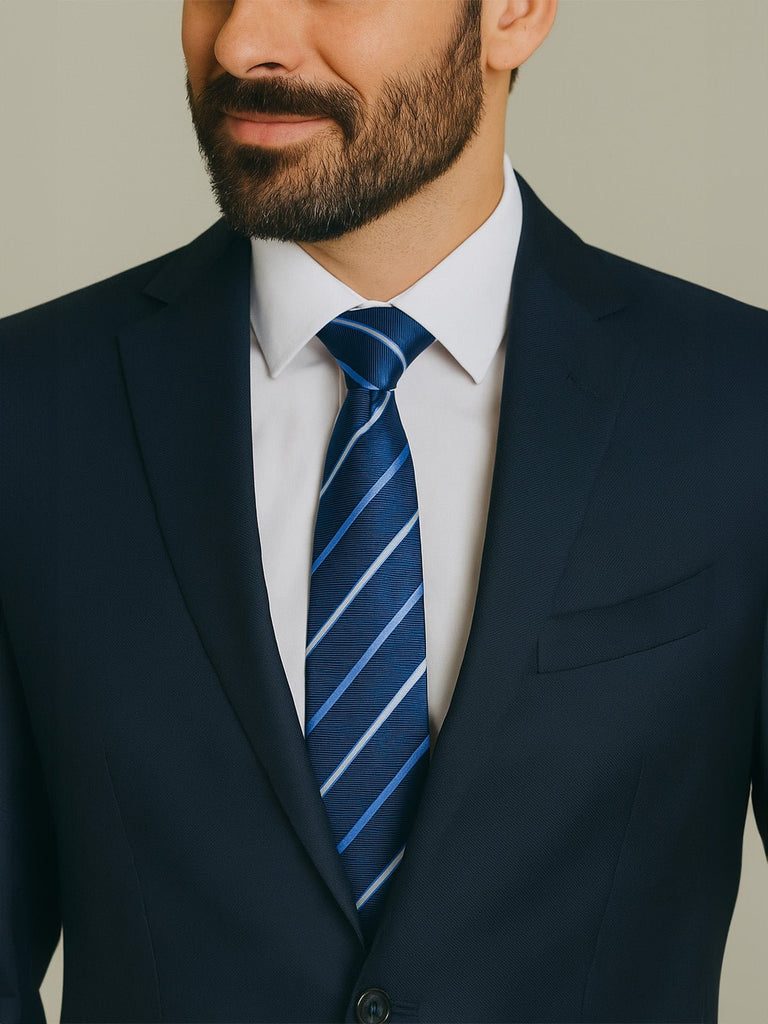 Krawatte für Herren 8 cm, marineblau gestreift, strukturierter Stoff, professioneller Look, Business-Anzug Accessoire, manuelles Binden, Modell Yves