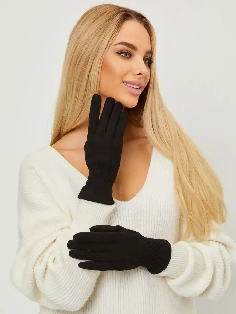 Schwarze Damenhandschuhe Winter, warm und weich, mit Fleece gefüttert, kompatibel mit Touchscreen, elegante Stickerei, taillierter Schnitt, Modell Euprasie