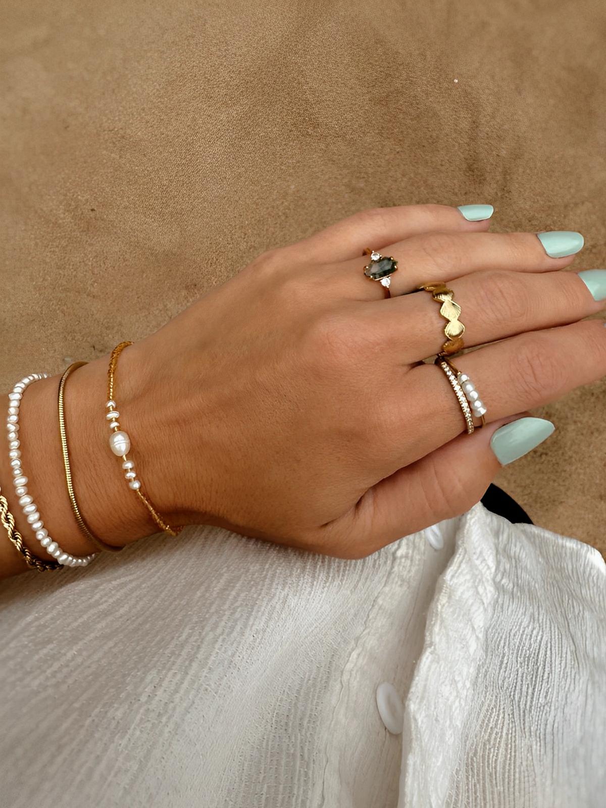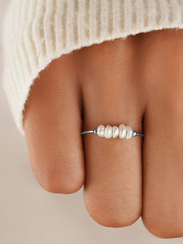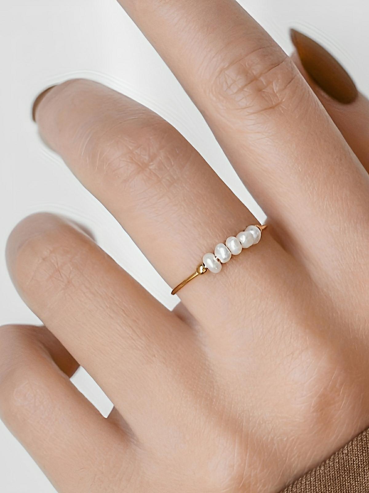 Damenring aus Edelstahl, natürliche Barockperle, verstellbarer Ring, Schmuck aus Titanstahl, leichter Luxusstil, Modell Ilyana