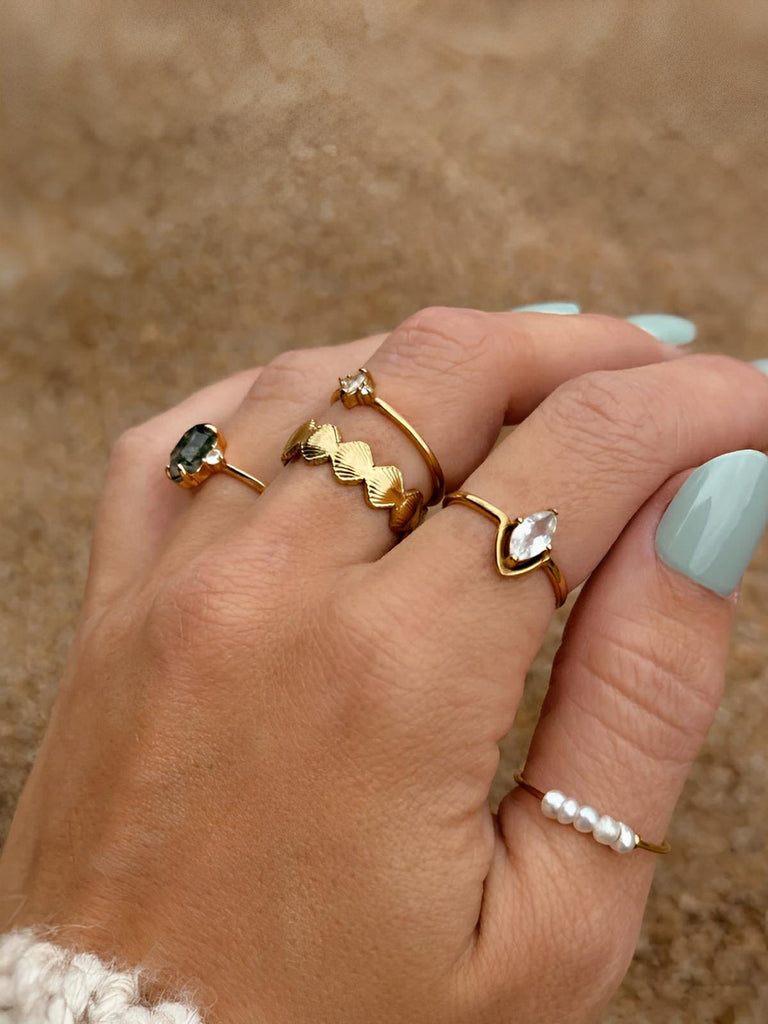 Sein minimalistisches Design passt zu jedem Outfit, ob lässig oder elegant. Die offene Struktur sorgt für optimalen Komfort, indem sie sich ohne Druck der Form des Fingers anpasst. Für Langlebigkeit konzipiert, behält er seinen strahlenden Glanz auch nach regelmäßigem Gebrauch und ist dabei wasserbeständig und hypoallergen.