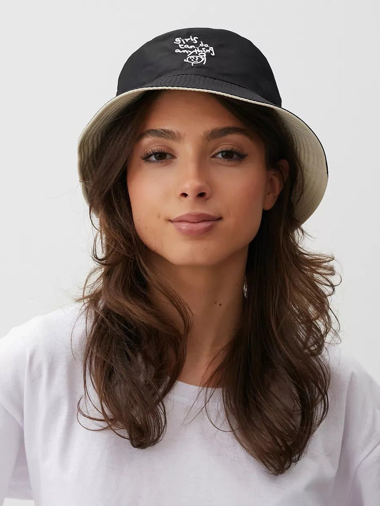Bob wendbar Damen Gesicht, besticktes Muster, Sonnenschutz, origineller Stil, Twill-Stoff, Modell Lana