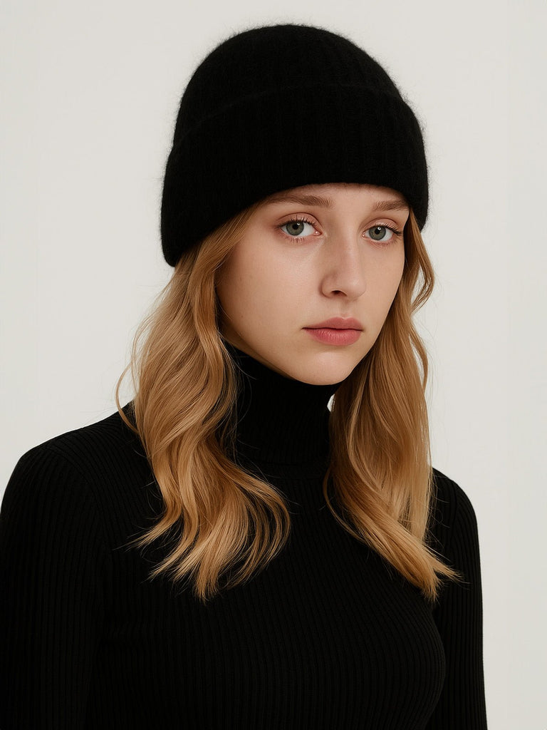 Weiche gestrickte Mütze, hohe Dichte, Angorakaninchenfell, warm und bequem, Winter, Unisex, minimalistischer Look, trendiger Stil, Modell Moha