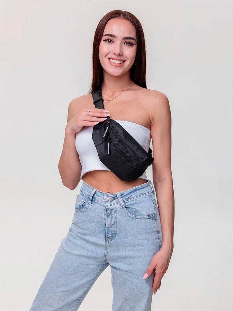 Sie verfügt über zwei Reißverschlussfächer, um Smartphone, Schlüssel, Papiere oder Geldbörse sicher aufzubewahren. Ihr kompaktes Format schmiegt sich perfekt an Taille oder Brust an und bietet volle Bewegungsfreiheit.