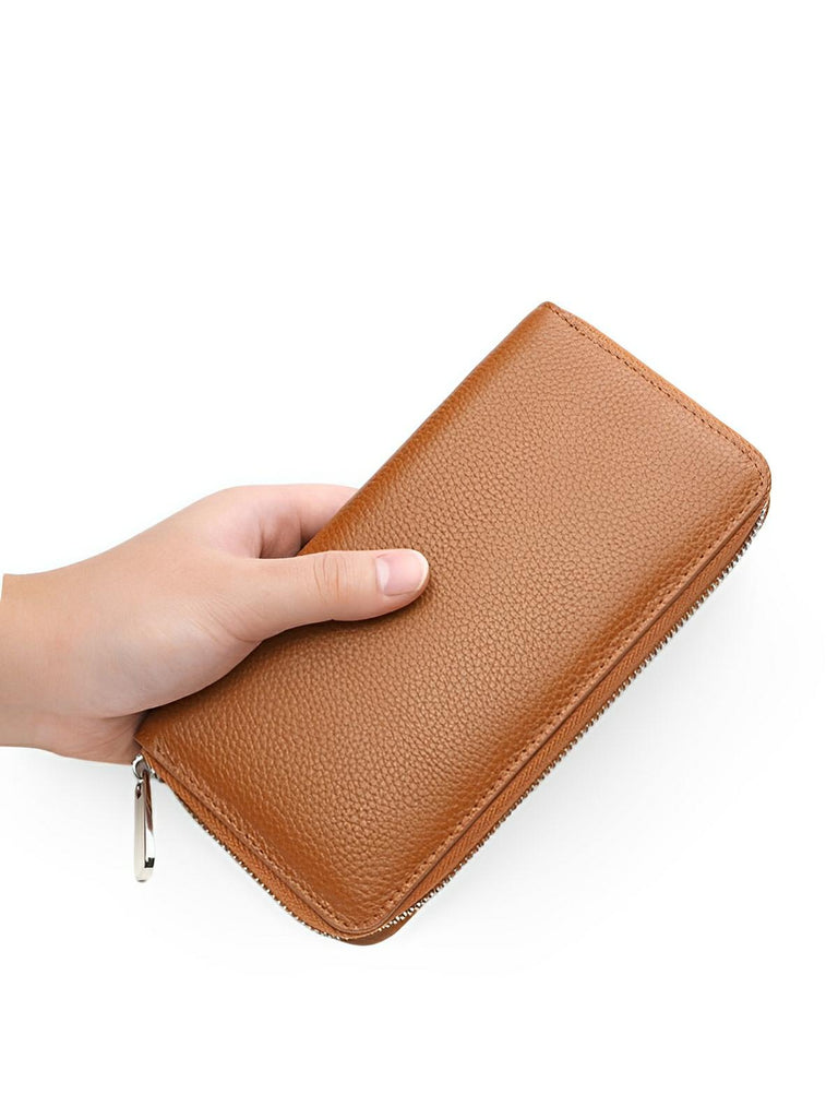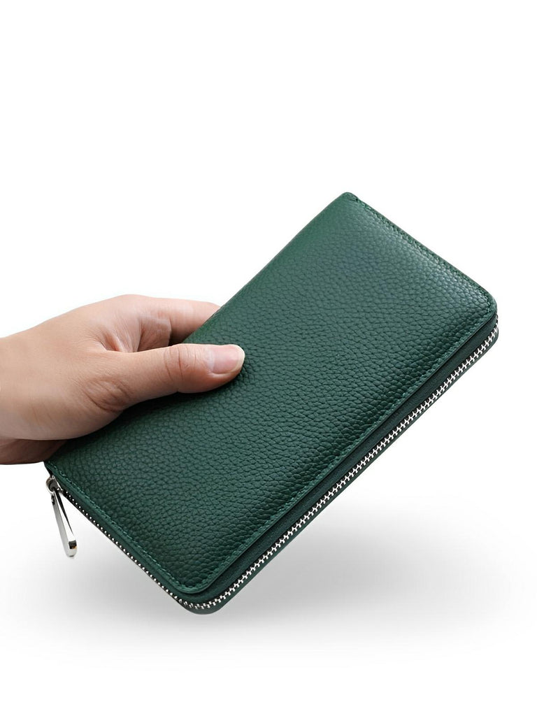 Langer Leder Geldbeutel, große Kapazität, Reißverschluss, mehrere Fächer, Karten- und Geldscheinaufbewahrung, elegantes Design, Modell Dominique