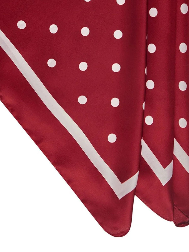 Seidenglänzender Schal, bordeauxrot mit weißen Punkten, 90x90 cm Quadrat, schickes Accessoire für Haare und Hals, Modell Karenne