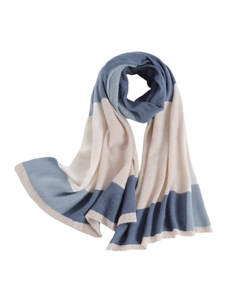Damen Winterschal, reine warme Wolle, langer dreifarbiger Schal, weicher gestreifter Schal, dicker Herbst-Winter-Schal, Modell Samira