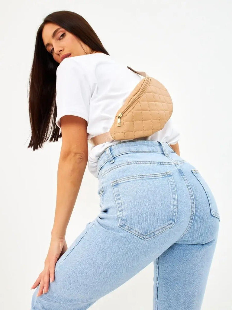 Sacoche banane matelassé, sac ceinture femme, sac bandoulière léger, mini sac zippé, sac pratique quotidien, modèle Zenobie - Sacoche - Beige