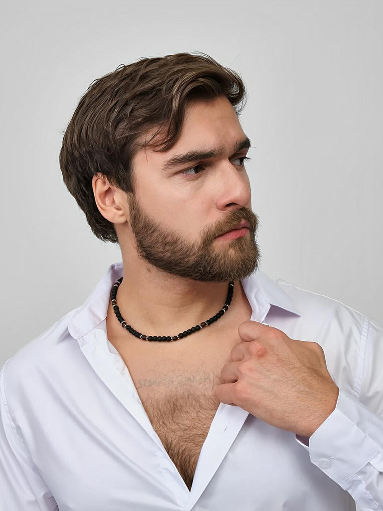 Halskette aus Natursteinen, Kombination aus Onyx und Tigerauge, Modell Lastin