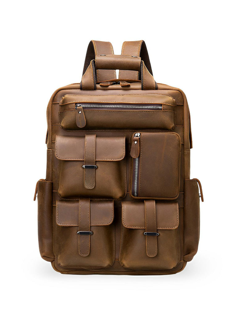 Entdecken Sie den Rucksack aus vollnarbigem Leder, entworfen für moderne Männer, die eine praktische und stilvolle Lösung suchen. Dieser Rucksack bietet hohe Haltbarkeit und bewahrt gleichzeitig ein raffiniertes Vintage-Aussehen. Perfekt für den Transport eines 15-Zoll-Laptops, ist er mit mehreren Taschen ausgestattet, um Ihre Accessoires optimal zu organisieren.