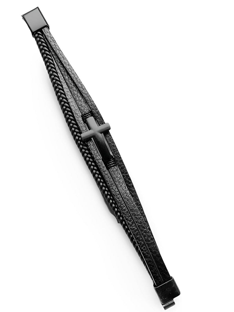 Mehrreihiges Lederarmband für Herren, christliches Kreuz aus Metall, trendiges Accessoire, Modell Narcissus