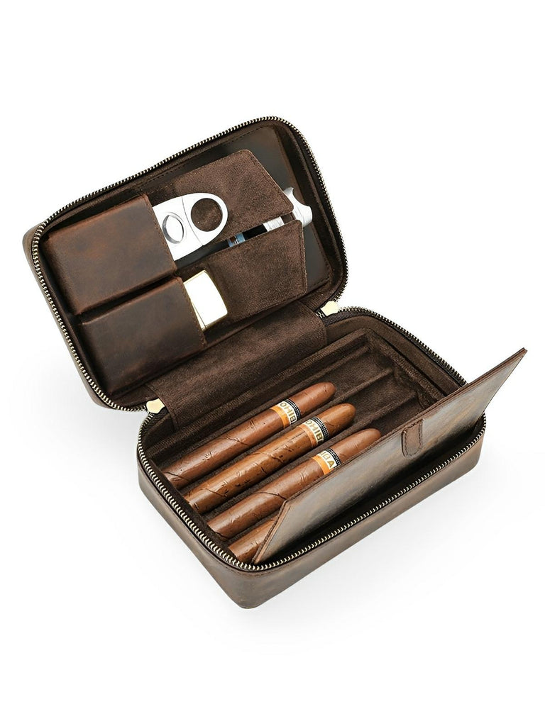 Cave à cigares, en cuir, vintage et adapté au transport, modèle Tiberius - Coffret - Café