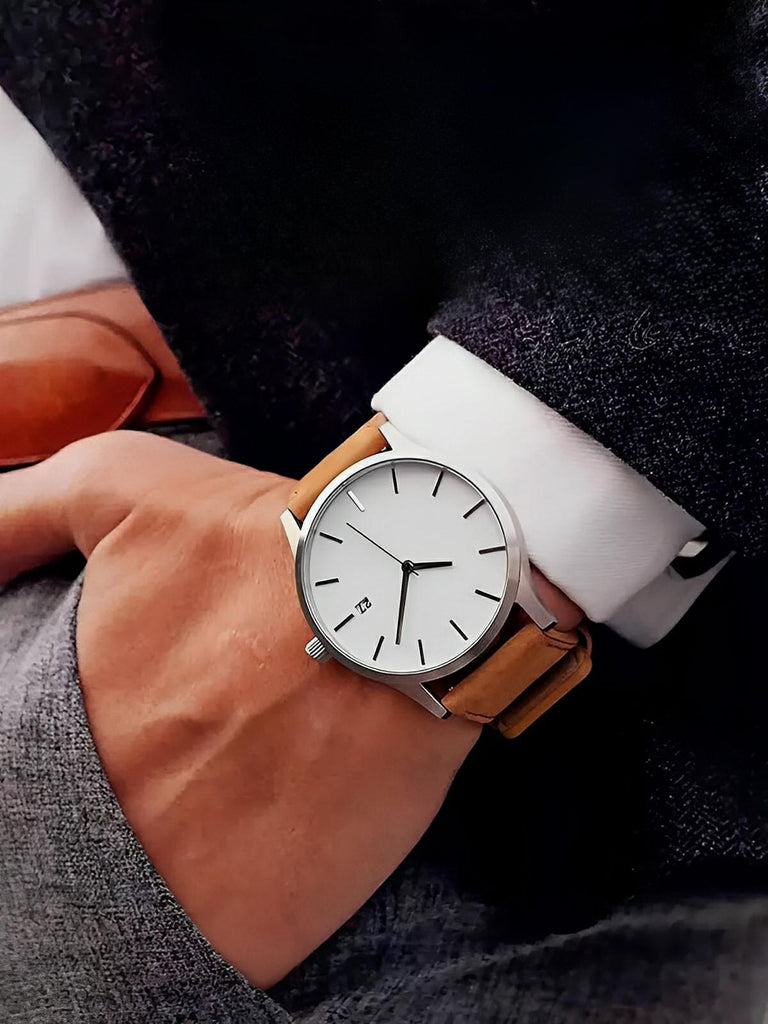 Men's quartz watch, minimalist dial, made of vegan leather, with date display, model Kayl