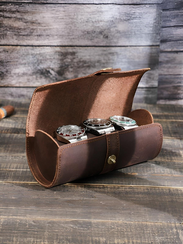 This watch box made of leather is designed to provide optimal protection for your collection while traveling. With its compact and elegant design, it can securely hold up to three watches.