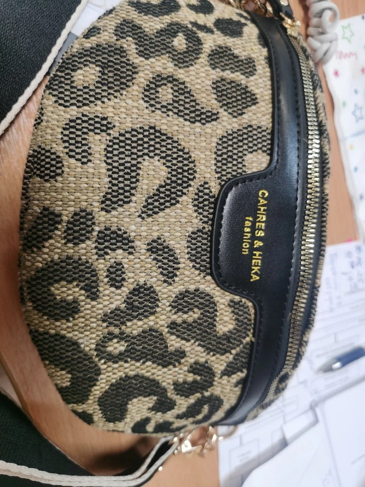 Combine character and functionality with this leopard print fanny pack, designed to accompany your days with boldness. Compact and structured, it allows you to keep essentials within reach while asserting a strong and confident style.