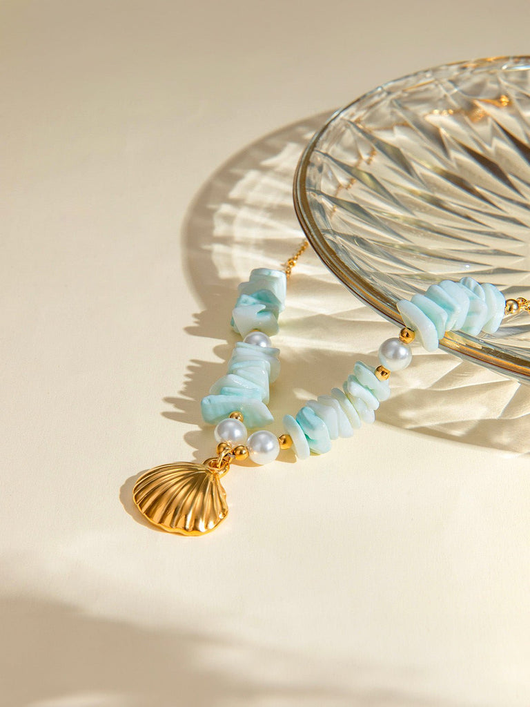 Shell or starfish pendant necklace, white pearls, gold chain, stainless steel, Gina model