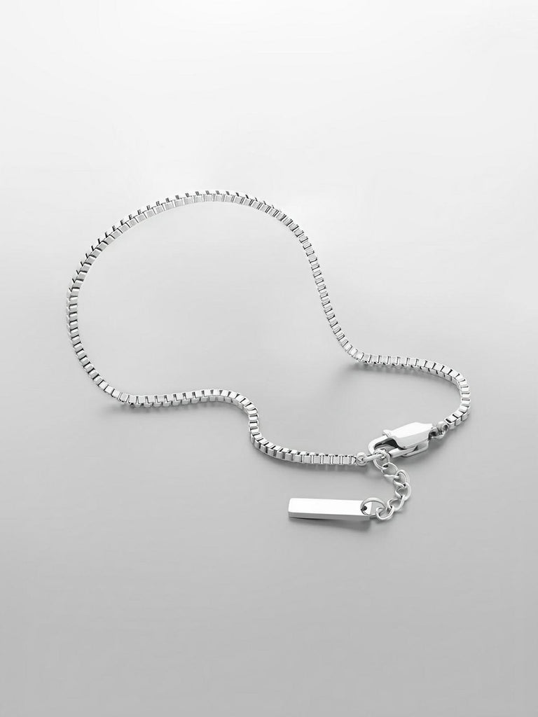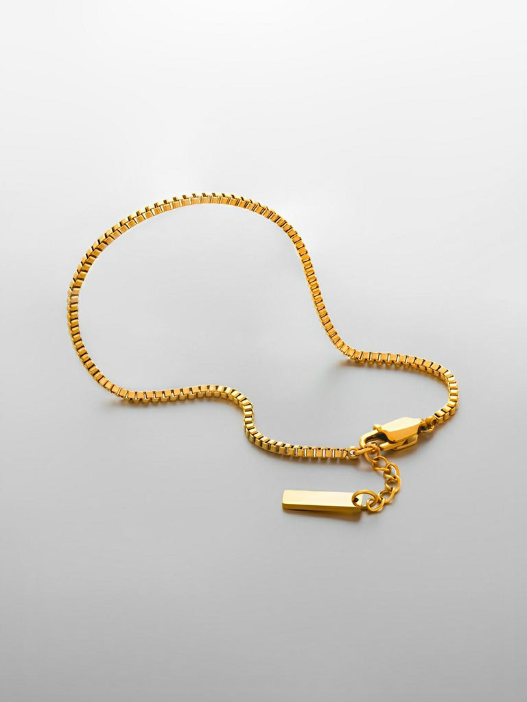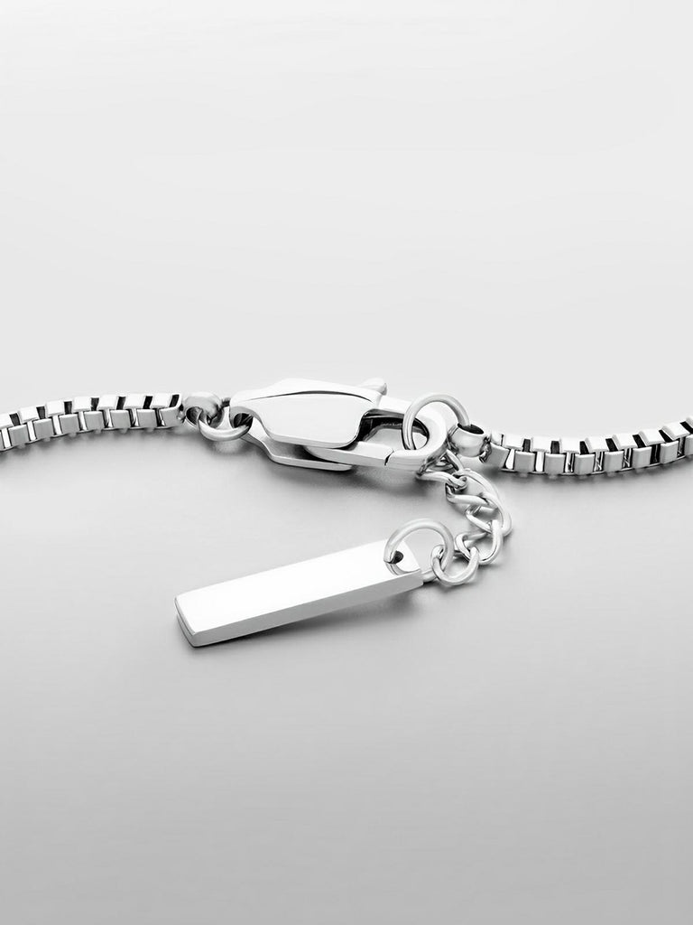 This bracelet in 316L stainless steel combines robustness and bold style. With its discreet yet characterful box chain, it is designed for men who like to accessorize their outfit subtly. Made to withstand daily use, this bracelet is water-repellent and does not fade thanks to its high-end plating treatment (18K gold or platinum depending on the version).