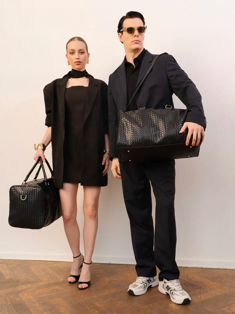 Mixed travel bag luxury style, sports bag, weekend bag, business handbag, black woven shoulder bag, holidays, Zulma model