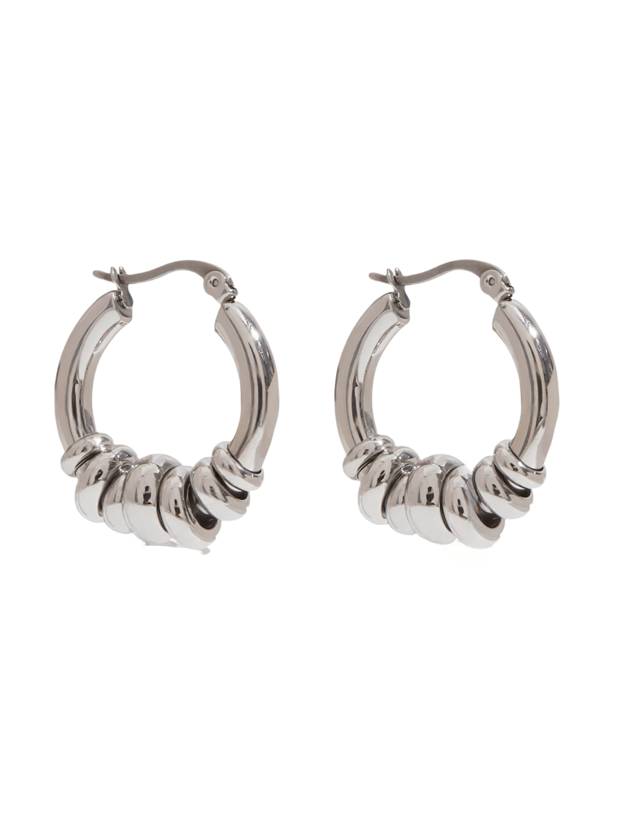 Express your personality with these thick hoops featuring a bold geometric design. Made of stainless steel, these earrings withstand time, humidity, and everyday friction.