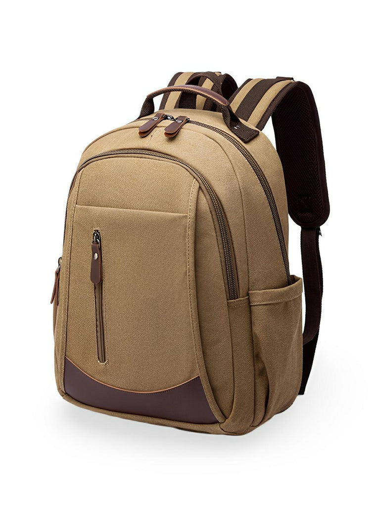 Sac à dos en toile canvas, grande capacité, bretelles rembourrées, design unisexe, modèle Charlie - Sac à dos - Marron