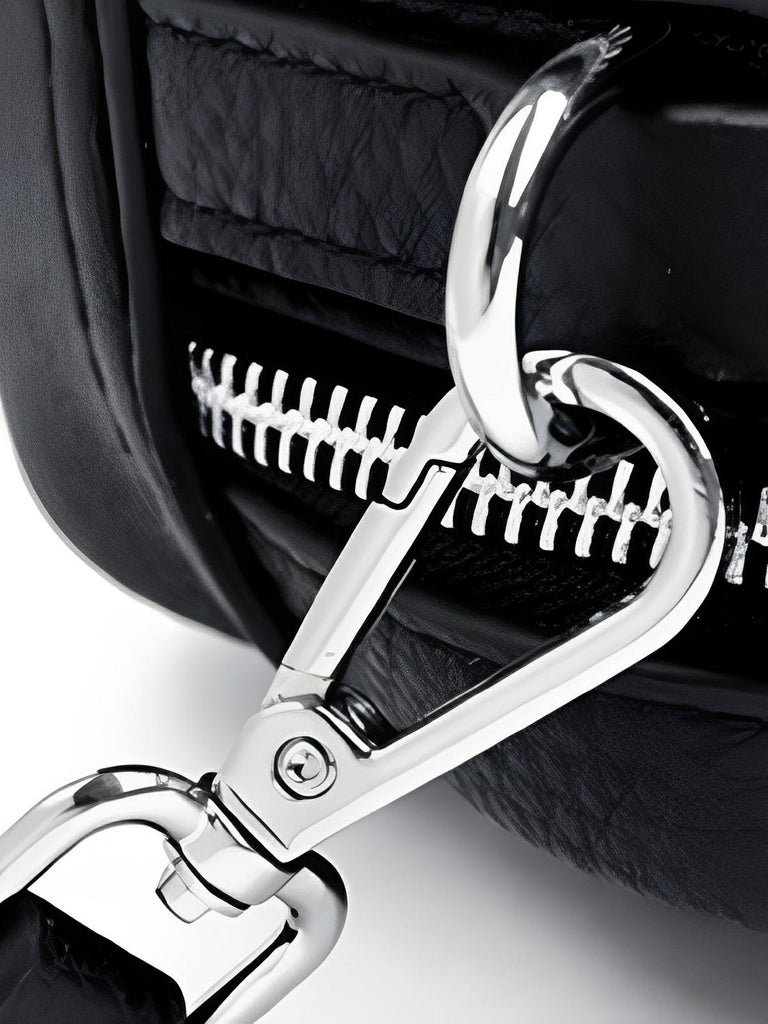 Adjustable shoulder strap • Grain leather • Secure zipper • Practical multiple pockets • Structured compact format •
