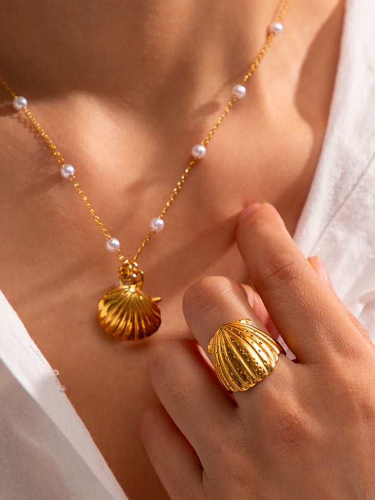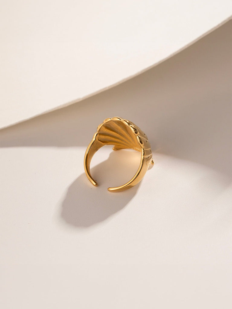 Golden shell ring, seaside jewelry, wide adjustable ring, stainless steel, marine inspiration, Djibi model