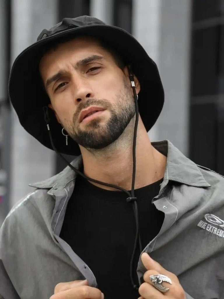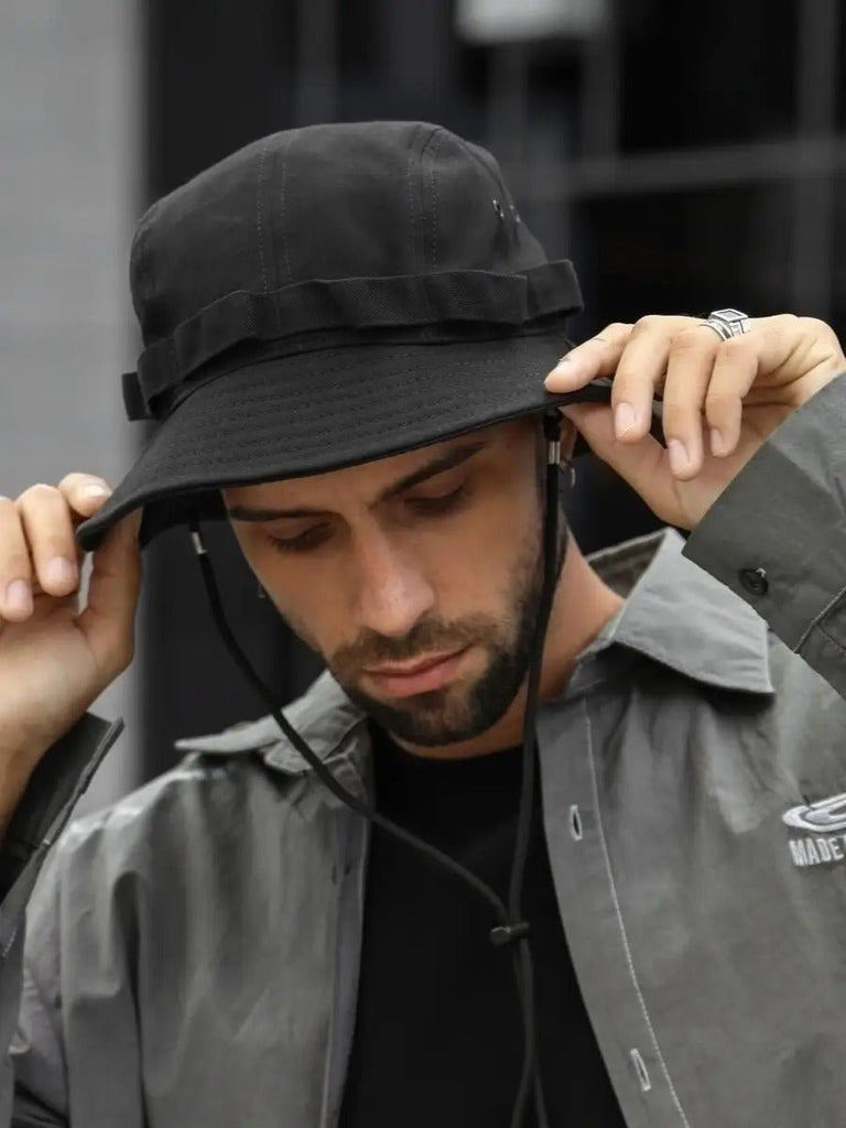 Bob streetwear et techwear, ajustable, anti - UV, avec cordon, gorpcore, chapeau de randonnée, modèle Elior - Bob - Noir