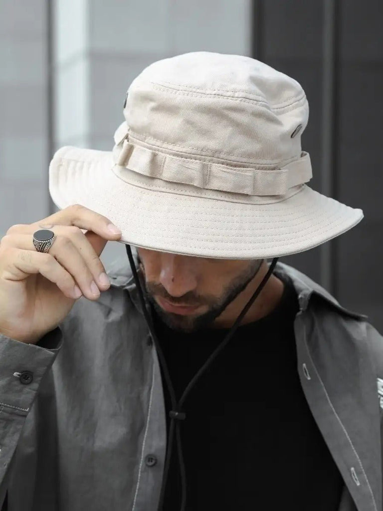 The design combines a clean style with a touch of character with a decorative band sewn at the base of the crown. Made from a durable cotton blend, it is as pleasant to wear as it is easy to match. Three sober colors – black, khaki, and army green – make it a perfect choice to complete a gorpcore, streetwear, or outdoor look.
