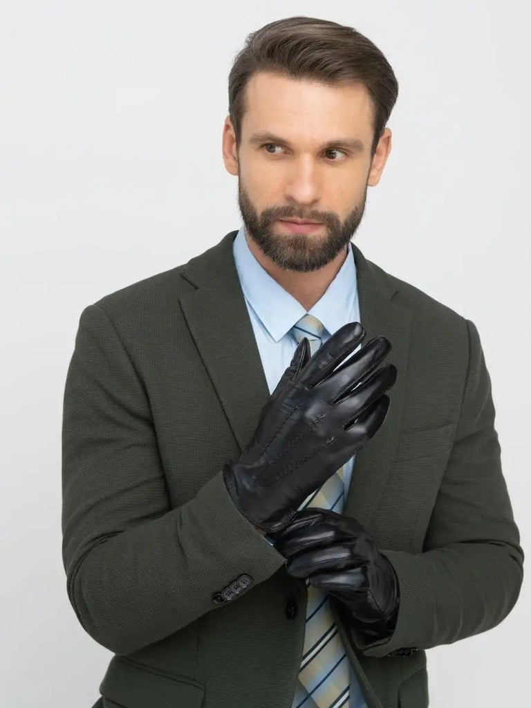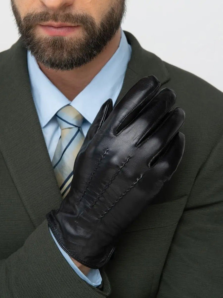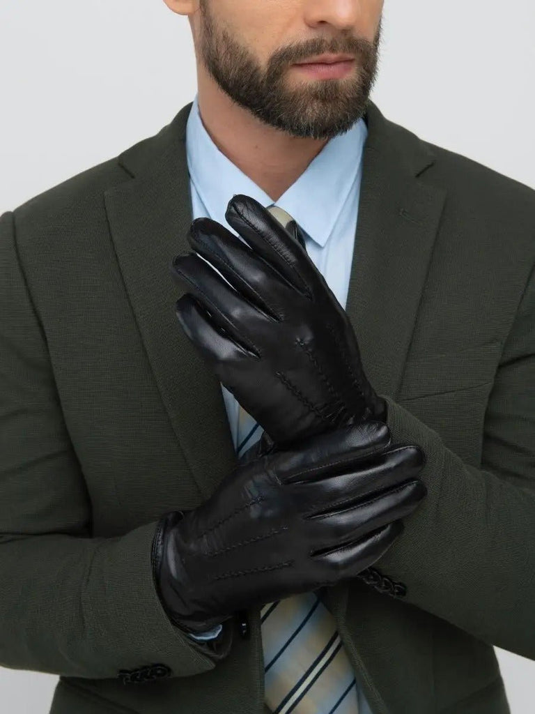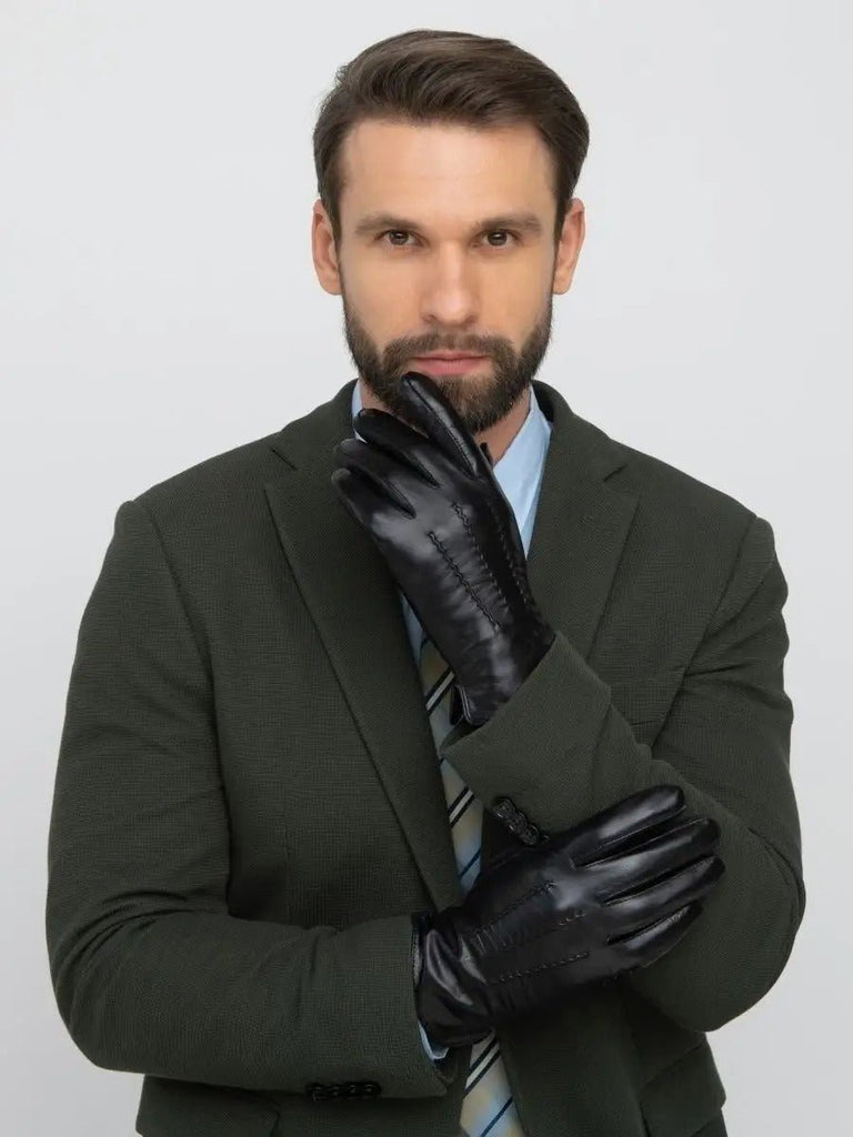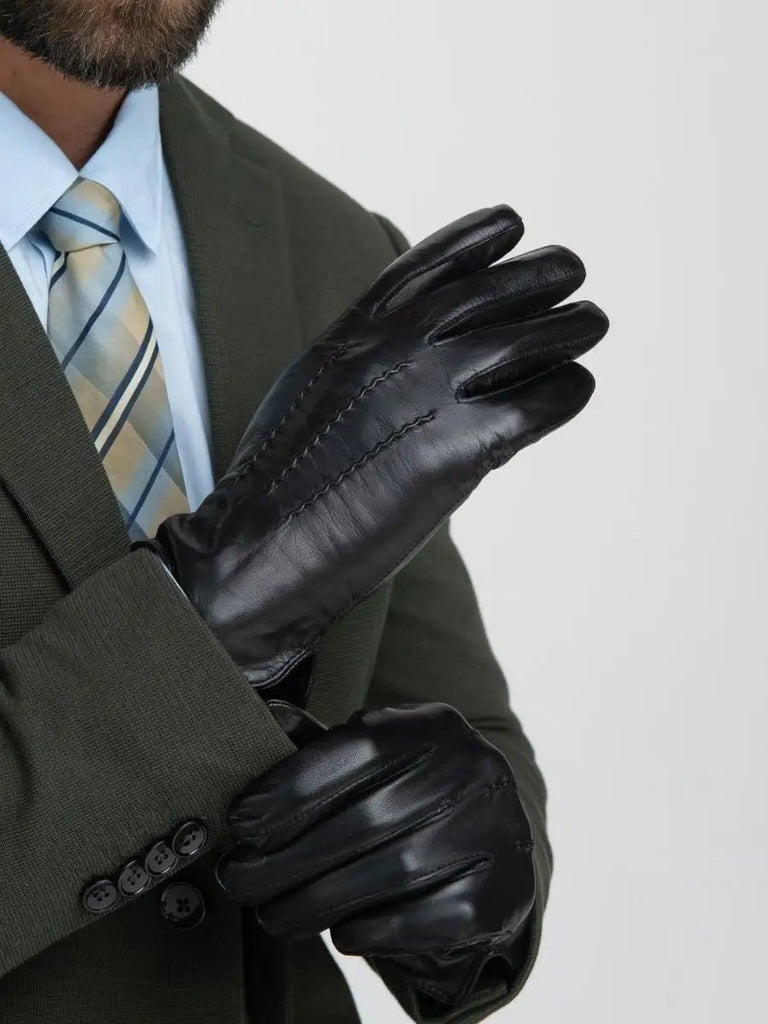 Men's leather gloves, dressy winter, wool lined, classic black, warm and elegant, Emilio model