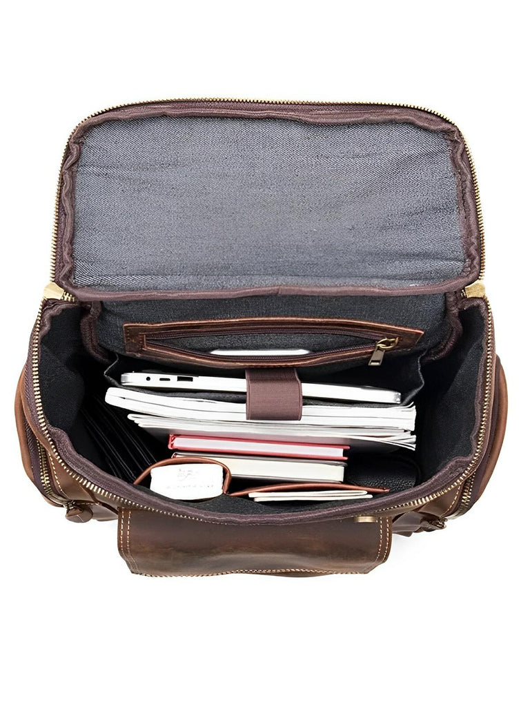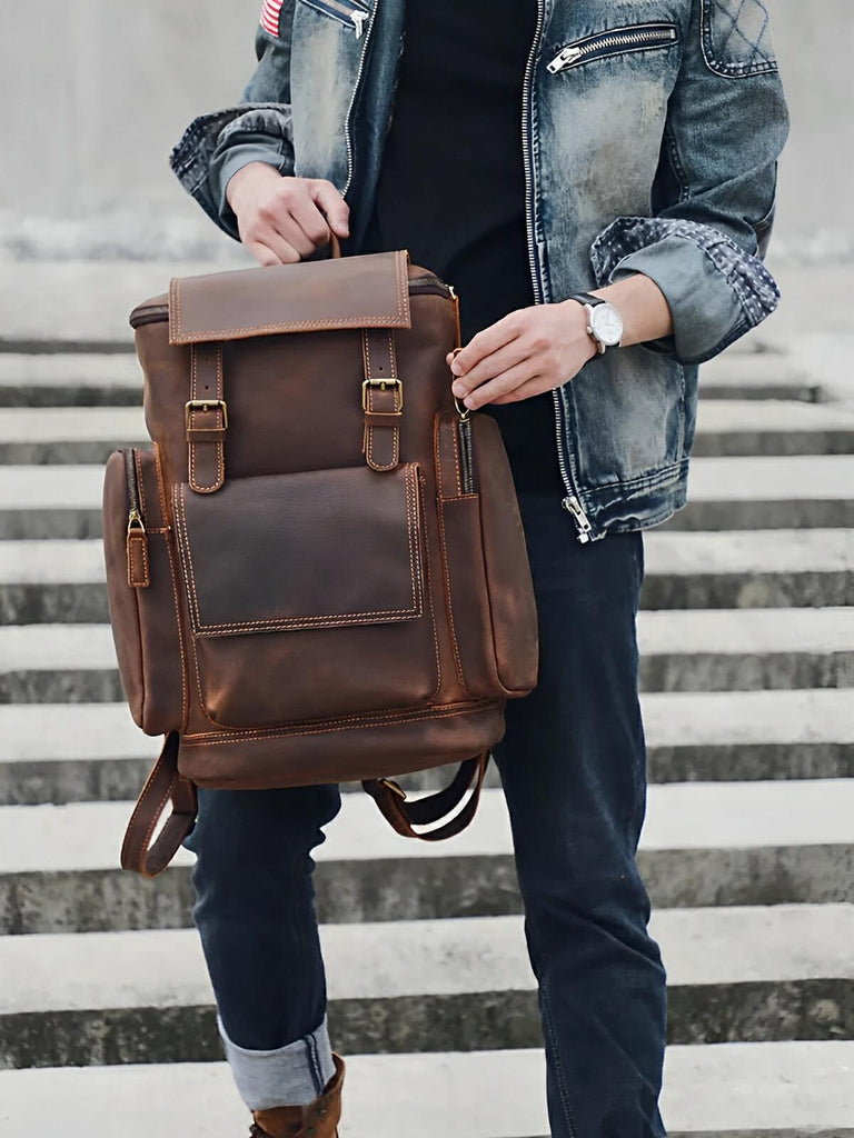 Discover the men's genuine leather backpack, an elegant model designed to meet the needs of urban adventurers and travelers. Made from thick leather, this bag offers a vintage design while ensuring a beautiful patina over the years.