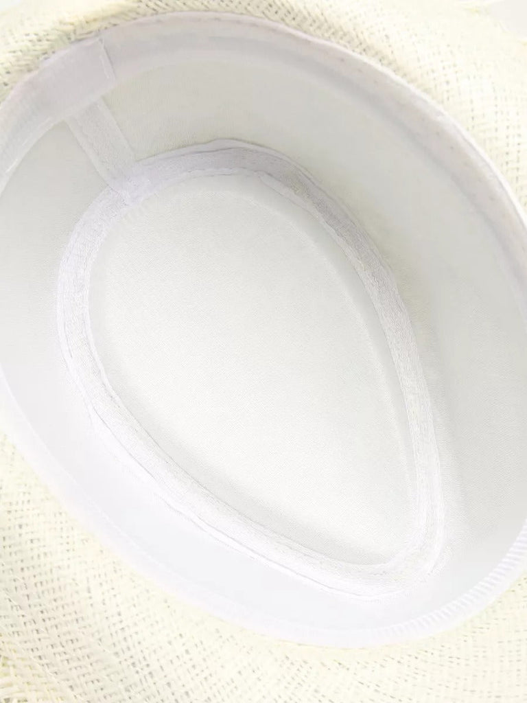 Chapeau paille homme, chapeau panama, à bord effiloché, fedora, idéal pour le soleil, modèle Valentin - Chapeau de paille - Blanc