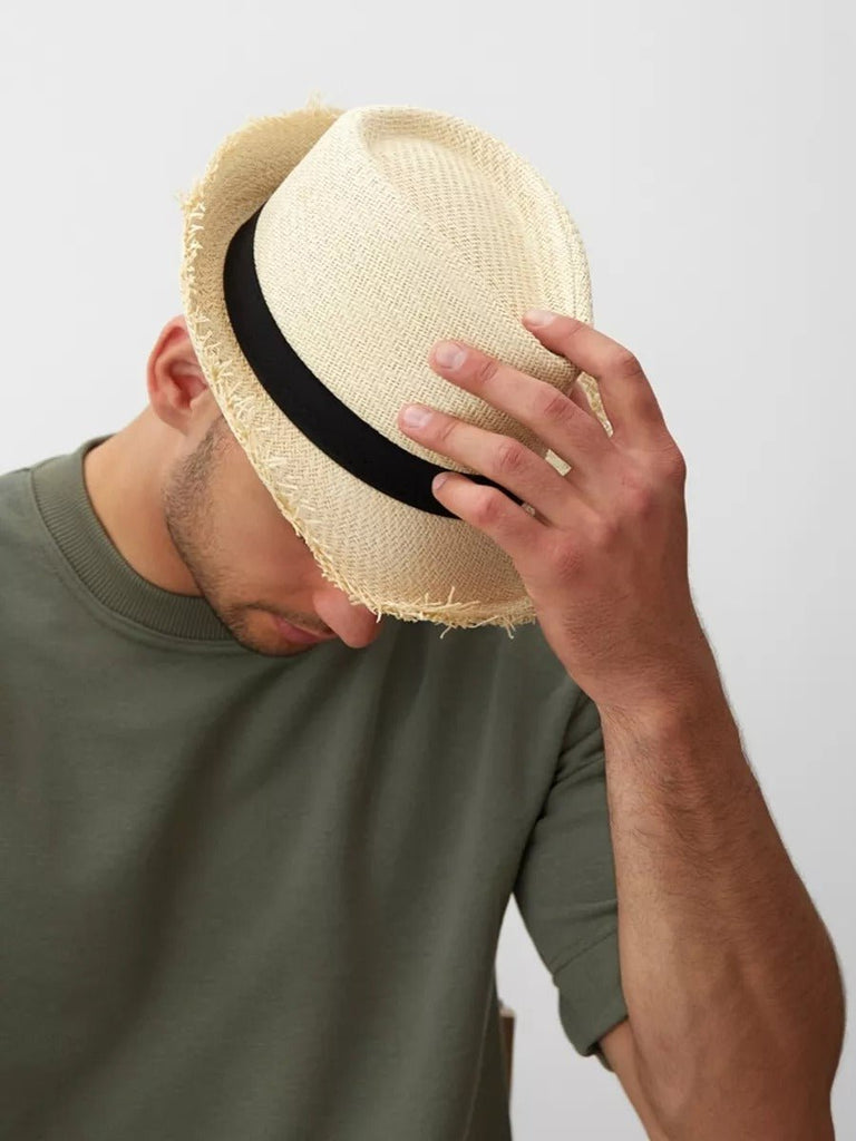 This men's straw hat is a must-have for the beautiful season, designed to accompany all summer adventures. Made from finely woven paper with an airy texture, it ensures natural breathability and a feeling of lightness even under intense sun.
