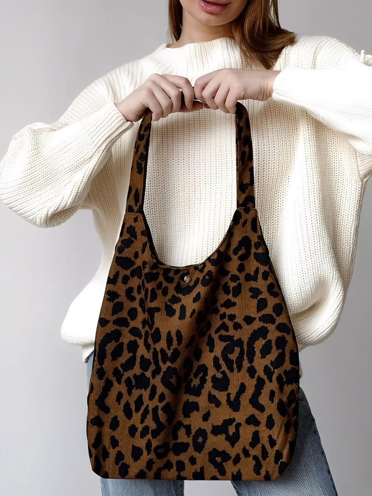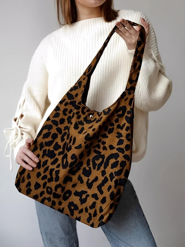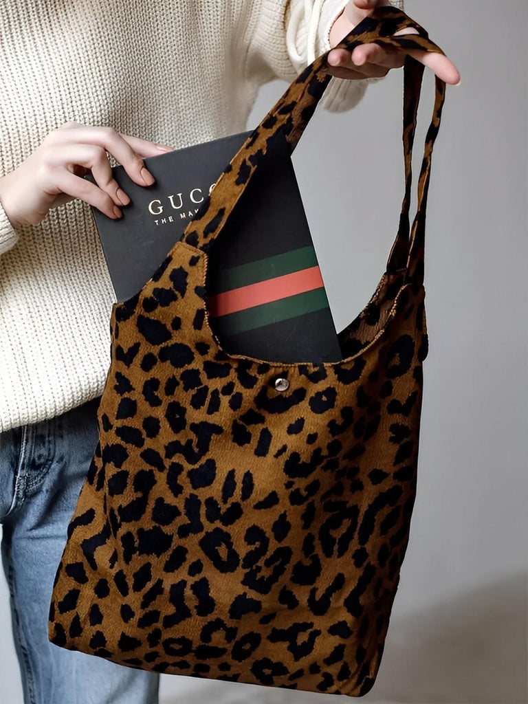 Trendy leopard print • Flexible and spacious design • Magnetic button closure • Ultra light and foldable • Ideal for everyday use •