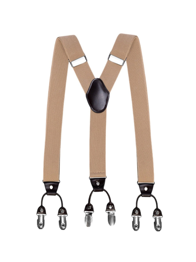 Men's suspenders, European style, Y shape, double metal clips, genuine leather, elastic band, adjustable, diamond pattern, formal wear, trouser accessory, Bertrand model