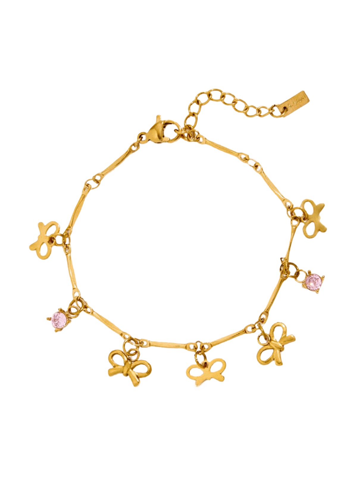Golden stainless steel bracelet with charms, hearts, flowers, crosses, colored stones, summer charms, Betty model