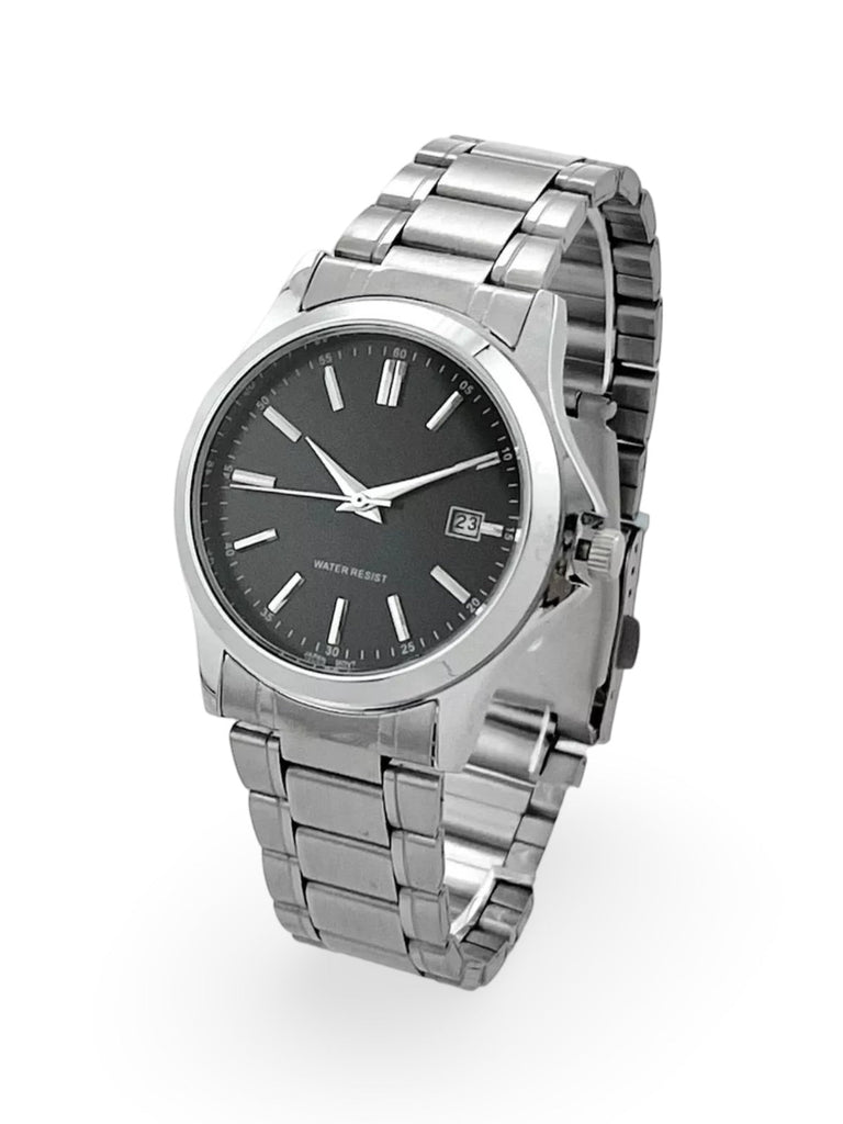 Displaying the date • Reliable quartz movement • Stainless steel bracelet • Refined black dial • Secure clasp •
