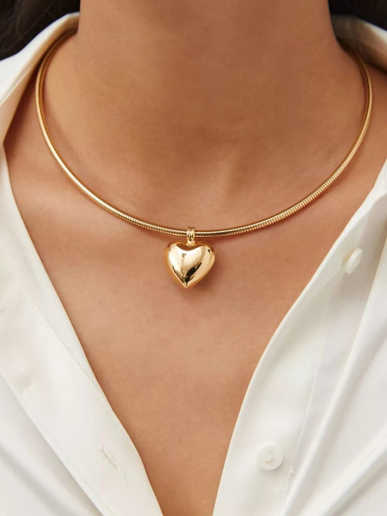 Express your style with this gold choker necklace, enhanced by a domed heart pendant with a mirror finish. Designed to sit perfectly on the collarbone, it adds a touch of character to all your outfits.
