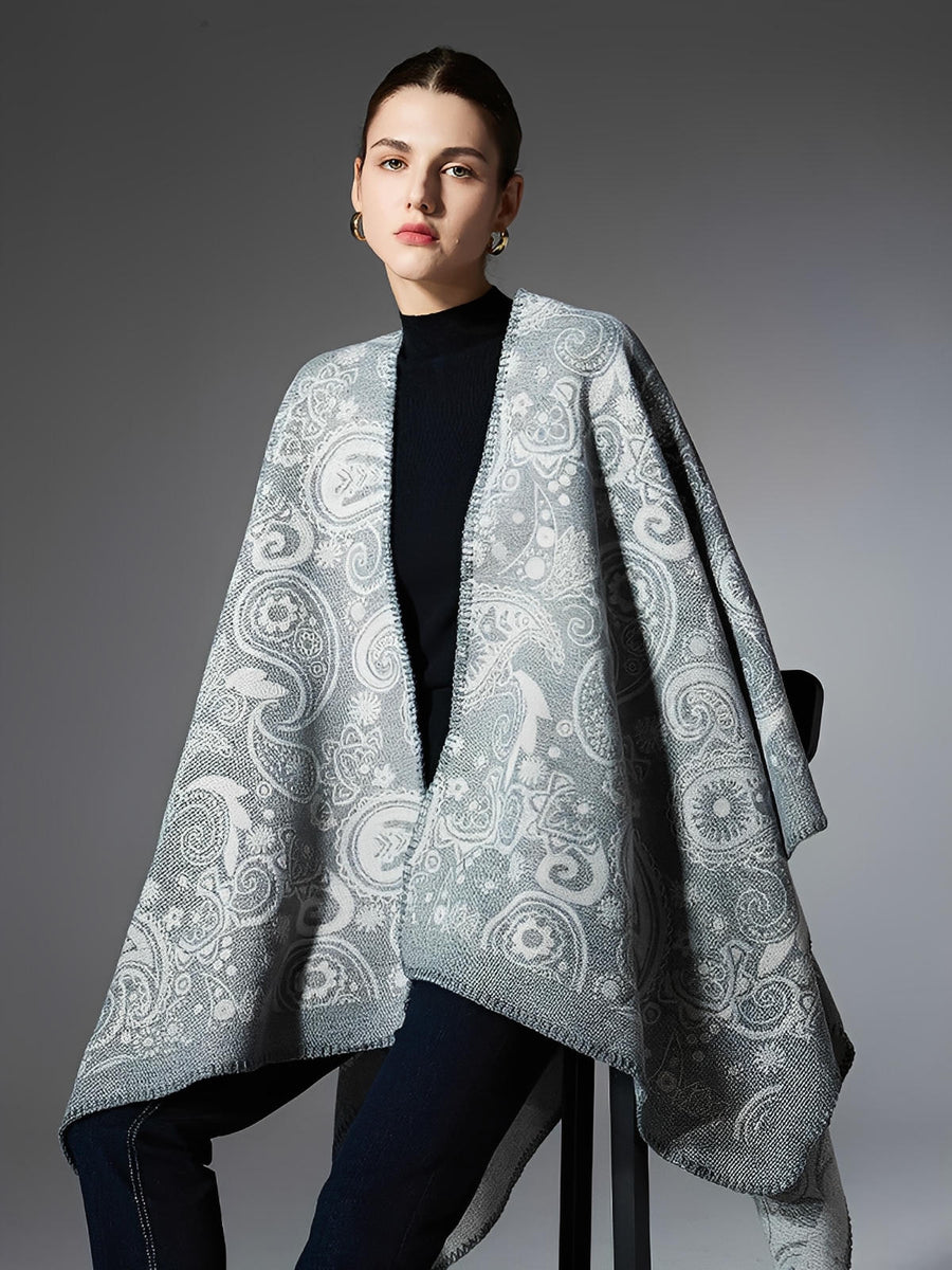 Adorned with a refined paisley pattern, it instantly dresses an outfit with a chic and calming touch. Worn over a sweater, dress, or coat, it creates a harmonious and relaxed look. This model also stands out for its soft touch and natural drape that effortlessly rests on the shoulders.