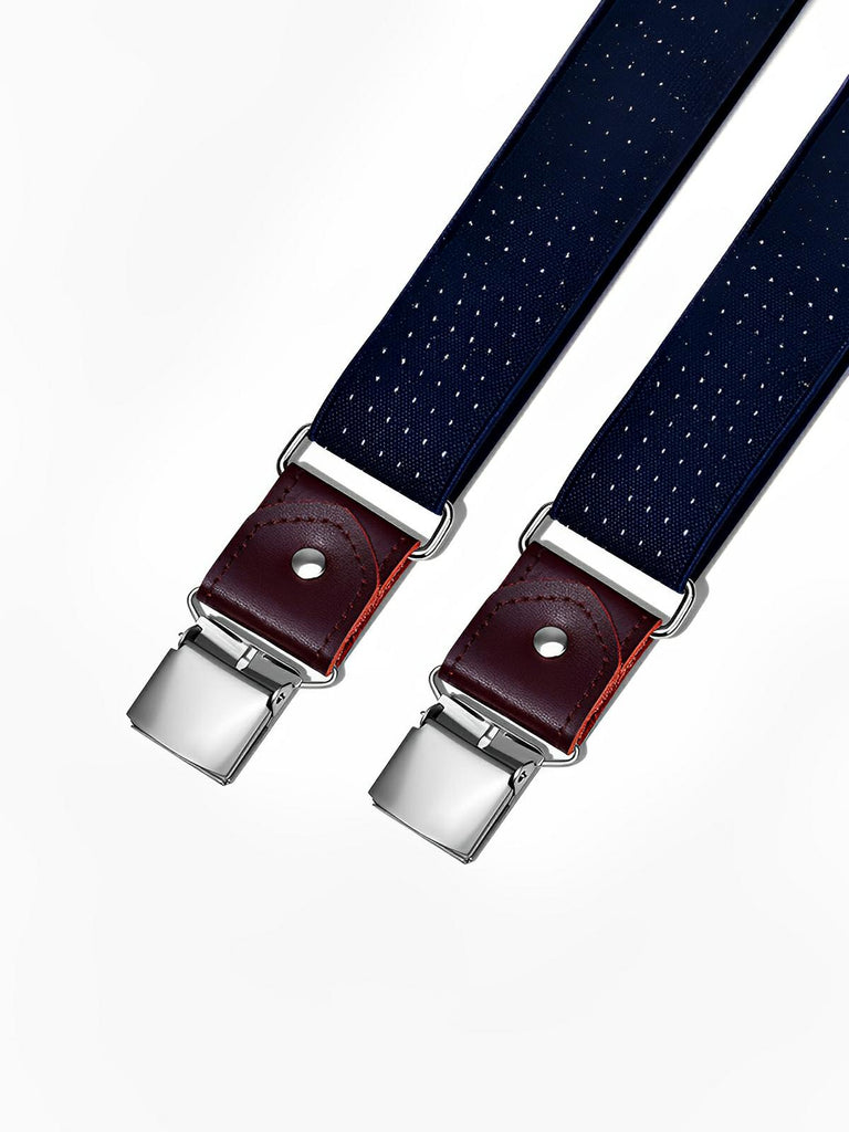 Designed to offer a perfect hold throughout the day, these Y-shaped men's suspenders combine functionality and distinction. Featuring 3.5 cm wide woven elastic bands, they easily adjust from 80 to 120 cm thanks to discreet and effective metal regulators.