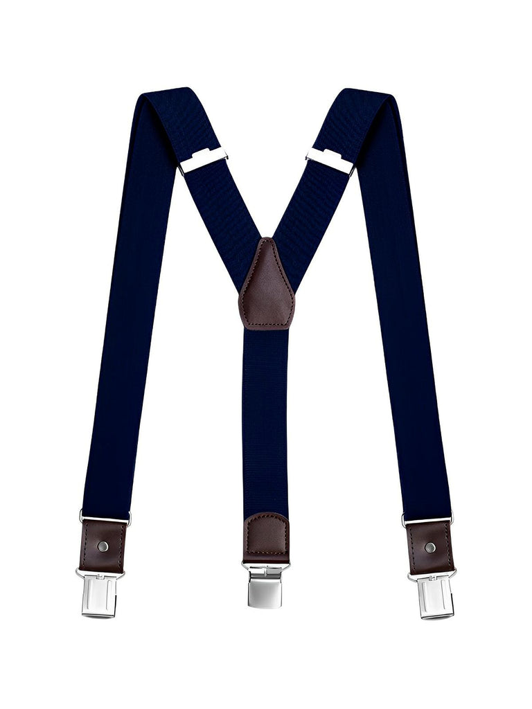 Men's Y-back suspenders, sturdy metal clips, adjustable elastic bands, genuine leather, formal or casual wear, François model