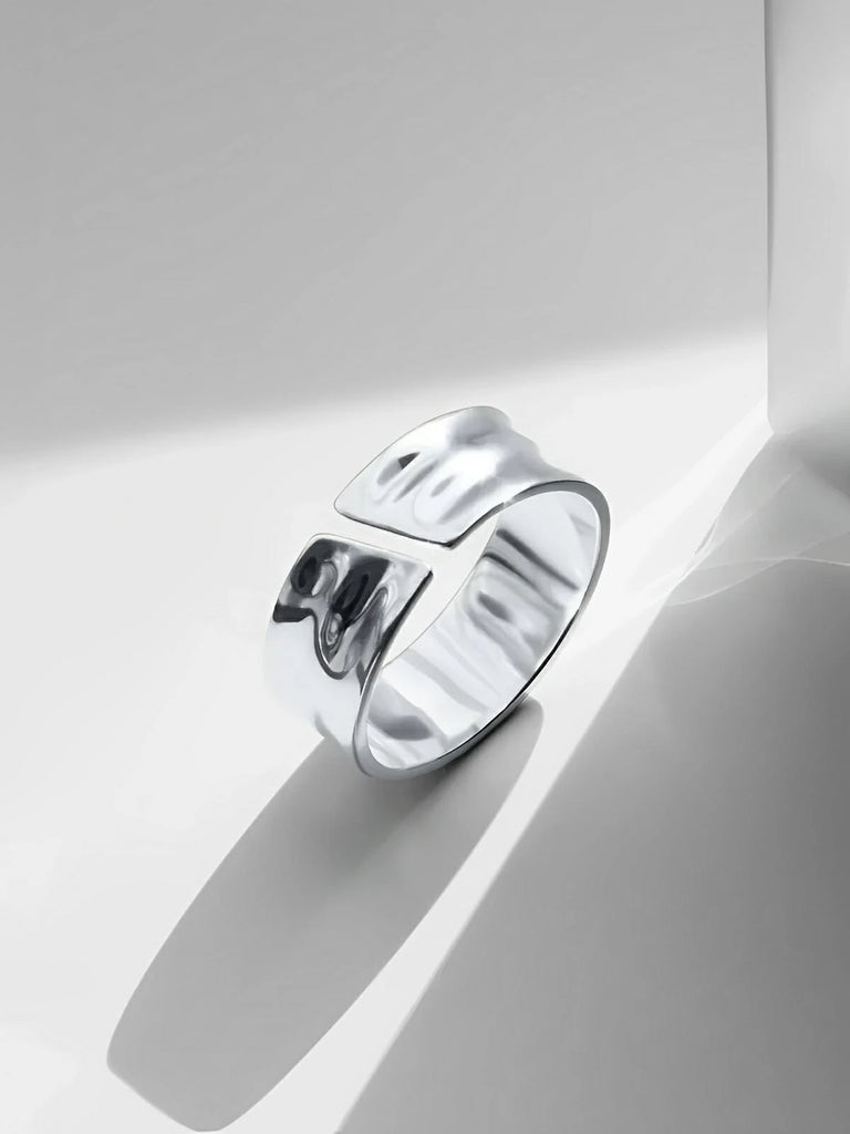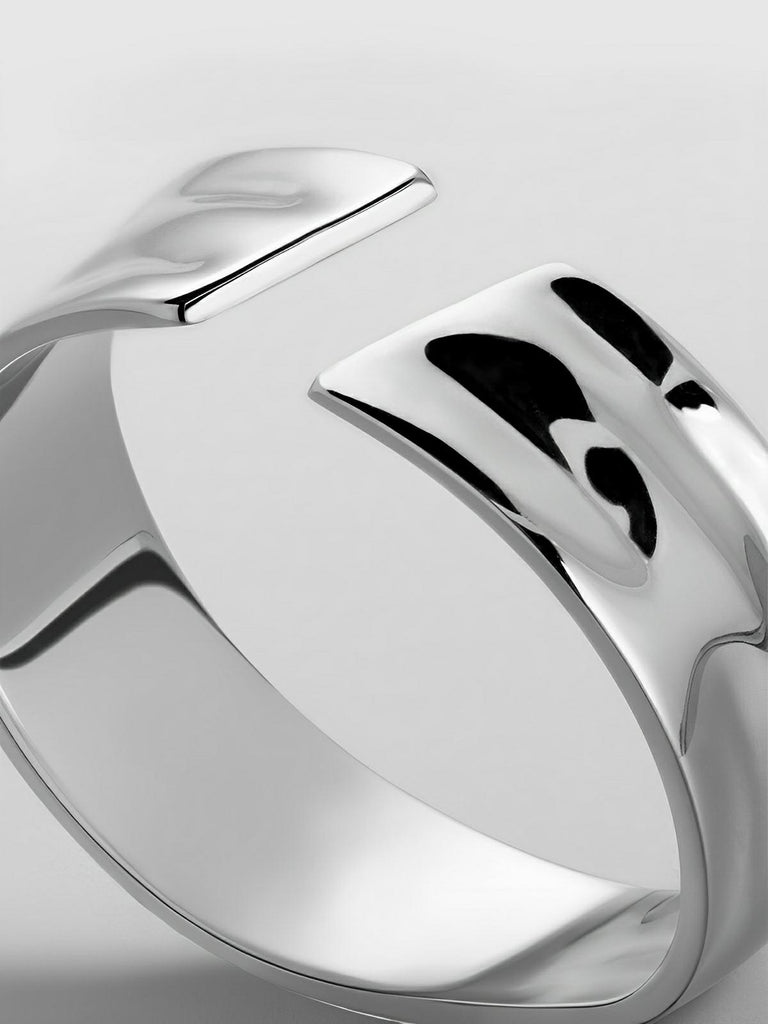 Available in 18K gold plating or silver-white finish, this ring is suitable for those seeking a distinctive touch without eccentricity. Its open shape offers a subtle fit while maintaining good hold.