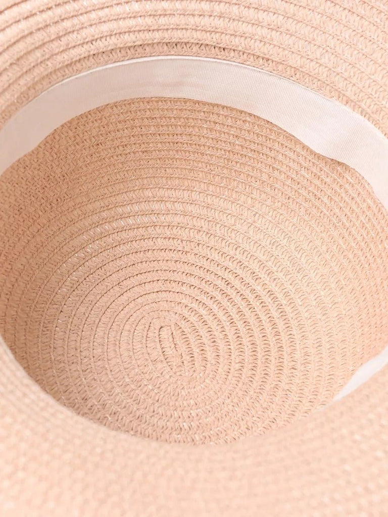 A two-tone ribbon adorned with a pearl adds a refined touch to the whole. This decorative detail is not only aesthetic: it helps keep the hat securely in place, even by the seaside or in light wind.