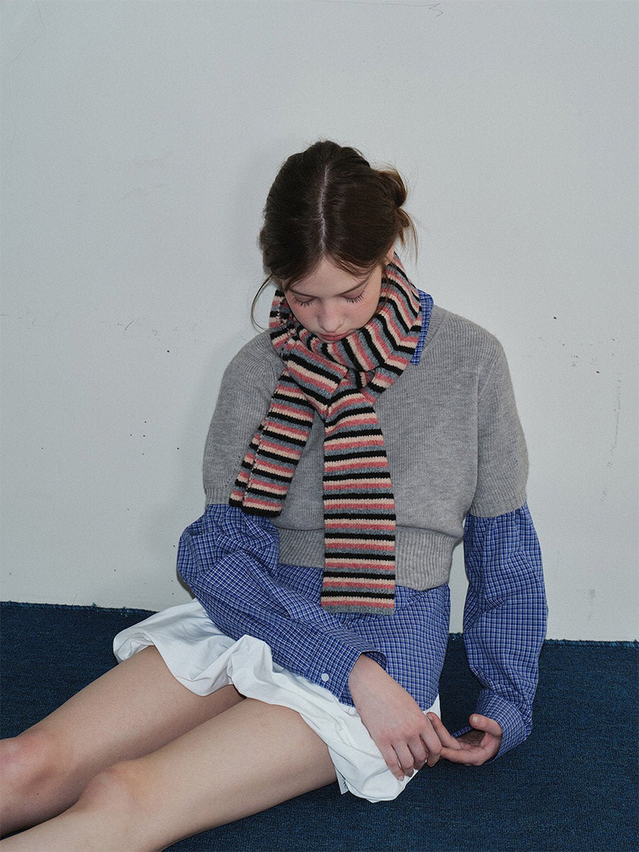 Immerse yourself in a cozy world with this knitted scarf featuring contrasting stripes, designed to face winter with style. Crafted from a generous knit blending wool, acrylic, and synthetic fibers, it charms as much with its soft texture as with its structured drape.