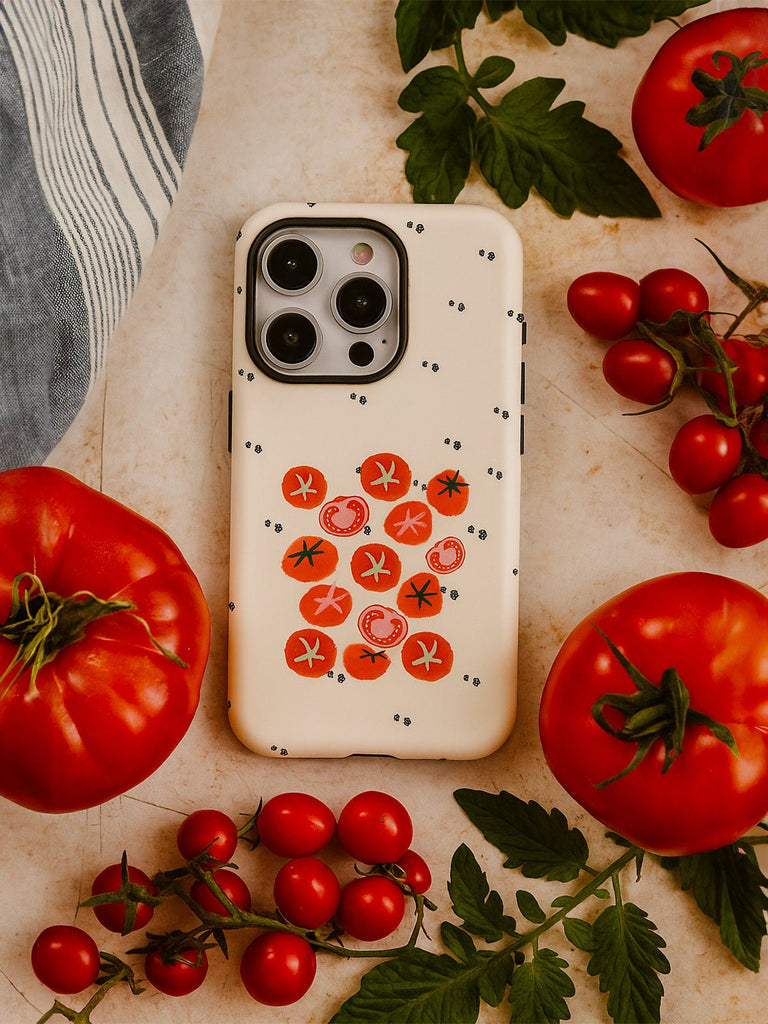 iPhone case tomato pattern, reinforced shockproof protection, matte finish, creative design, compatible with wireless charging, Tama model