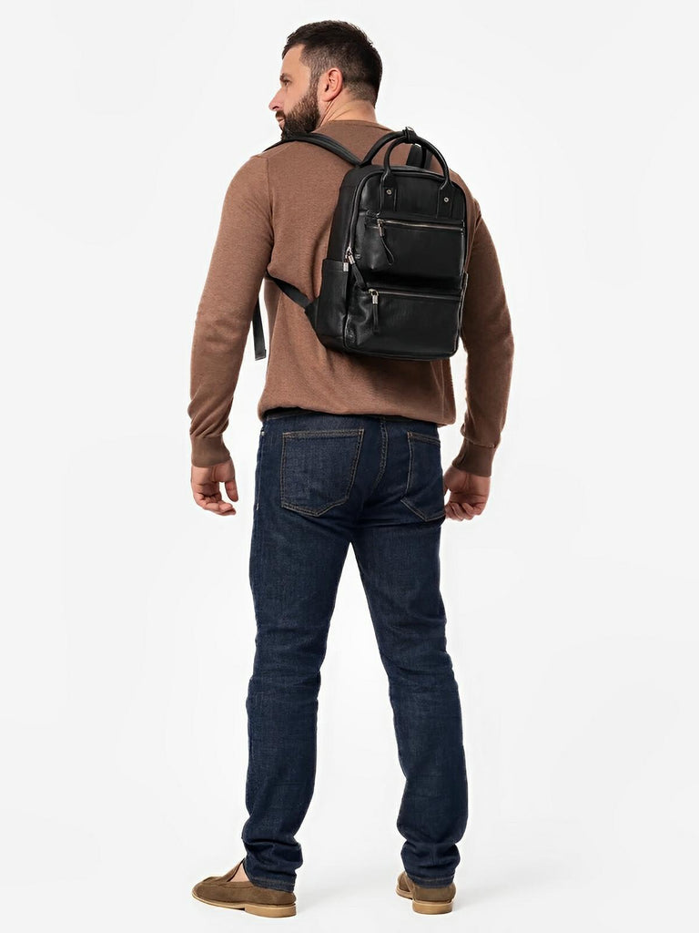 Discover this men's full-grain leather backpack, a perfect companion for your workdays, travels, or daily outings.