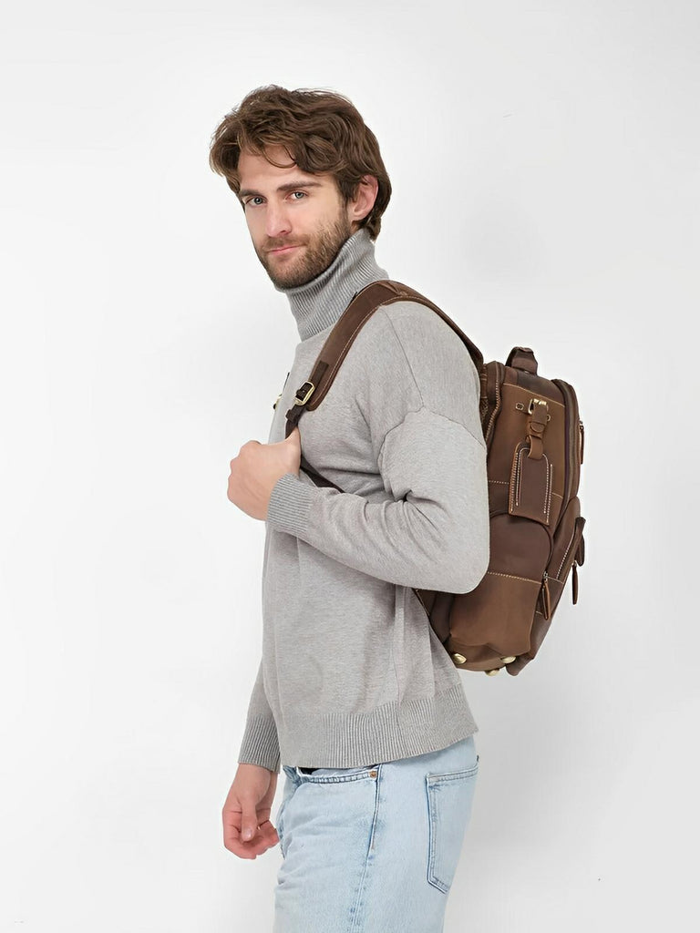 Full grain leather backpack in vintage style, large capacity, suitable for travel, Wilfrid model