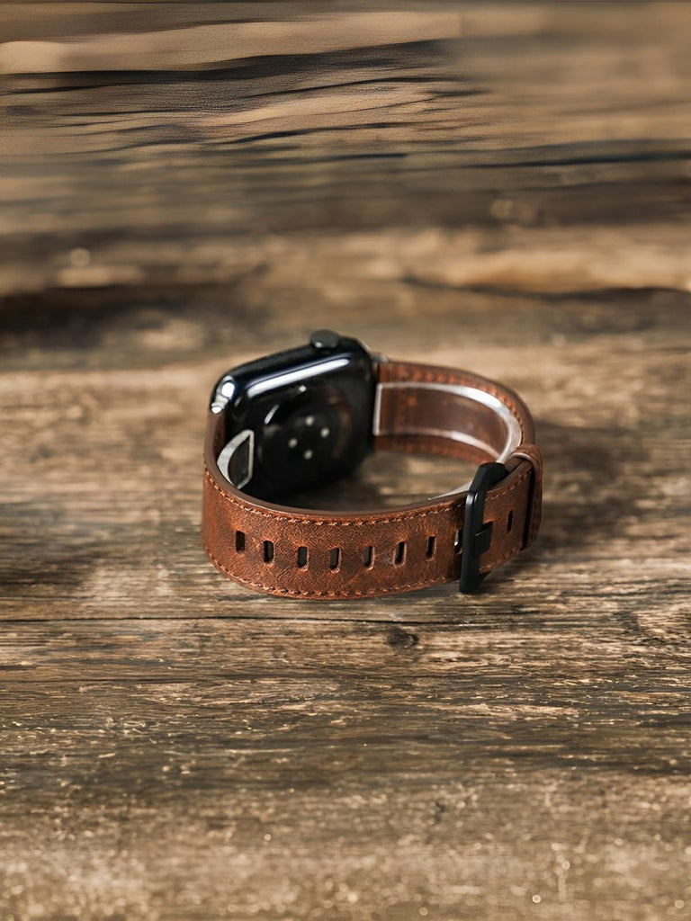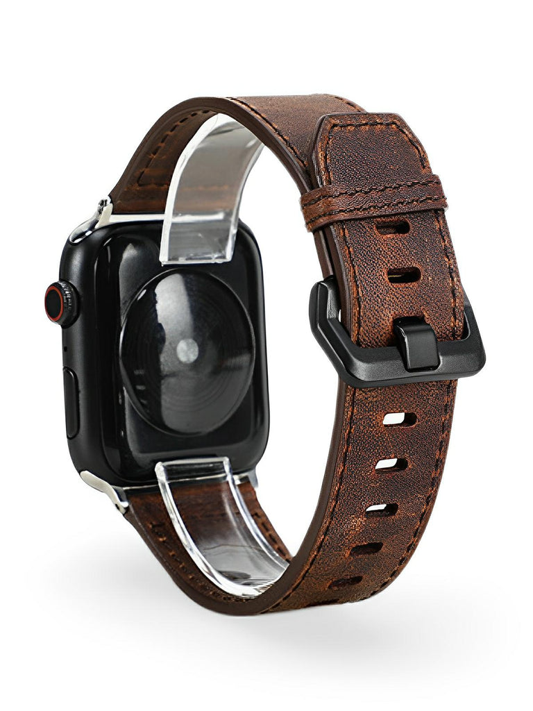 Vintage leather bracelet for Apple Watch, genuine leather, metal buckle, compatible with all series, Damio model